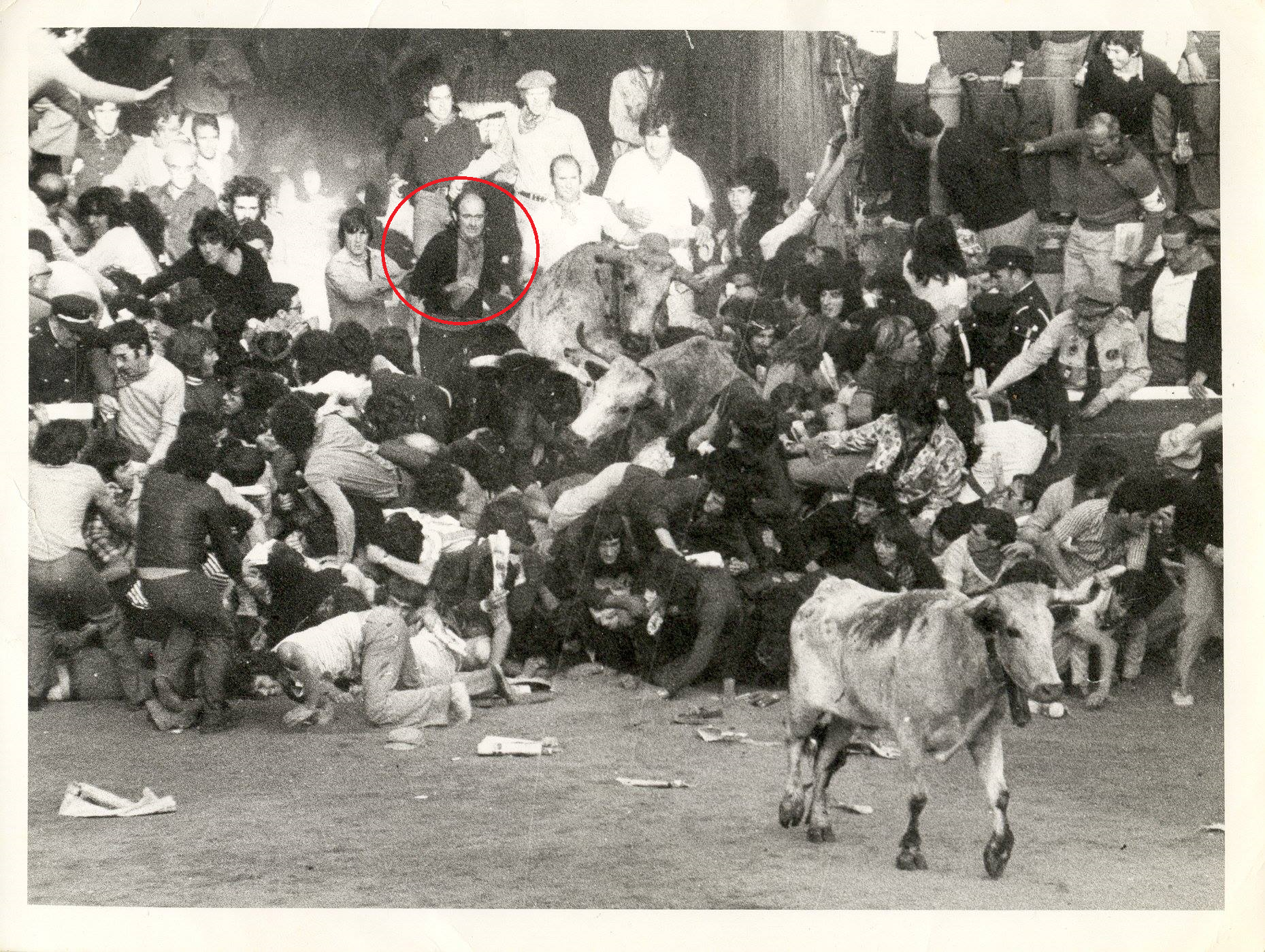 Afterwards I went back to his infamous apartment on calle Estafeta and he showed me around that museum of toros, toreros, toreo, el encierro, San Fermín and Pamplona. It was there that I discovered that this man, whom I knew to be a great scholar of the corrida – he attended over 4,000, his library was the envy of other aficionados, and he had been friends with Maestros from Antonio Ordóñez on and was known by most ganaderos and toreros of today – had also been a great practitioner of the encierro. He was a Maestro in the streets with Matt from the early ’60s, alongside the great photographer Jim Hollander who arrived in ’62, as well as those local legends of the encierro, Miguel Ángel Eguiluz, Jokin Zuasti and Julen Madina – dear friends all (and contributors to Fiesta: How To Survive The Bulls Of Pamplona, which Noel not only helped with, but in whose apartment in Madrid its first words were written.)