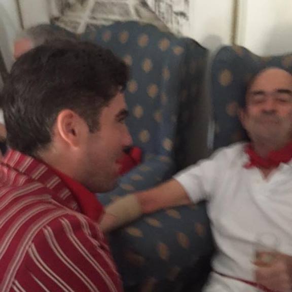 Alexander Fiske-Harrison and Don Antonio Miura, ganadero de toros bravos, at the homage to Noel Chandler, Pamplona 2011