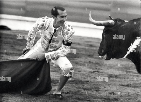 “I remember.” Luis Miguel Dominguín said, looking over the wine bottles on the table, one hand on his wine glass, one hand on the arm of the woman at his side. “I was worried I would have another rival. Then I heard how severe the injury was. And I had not realised the banderillero Ángel was like a brother to you.”